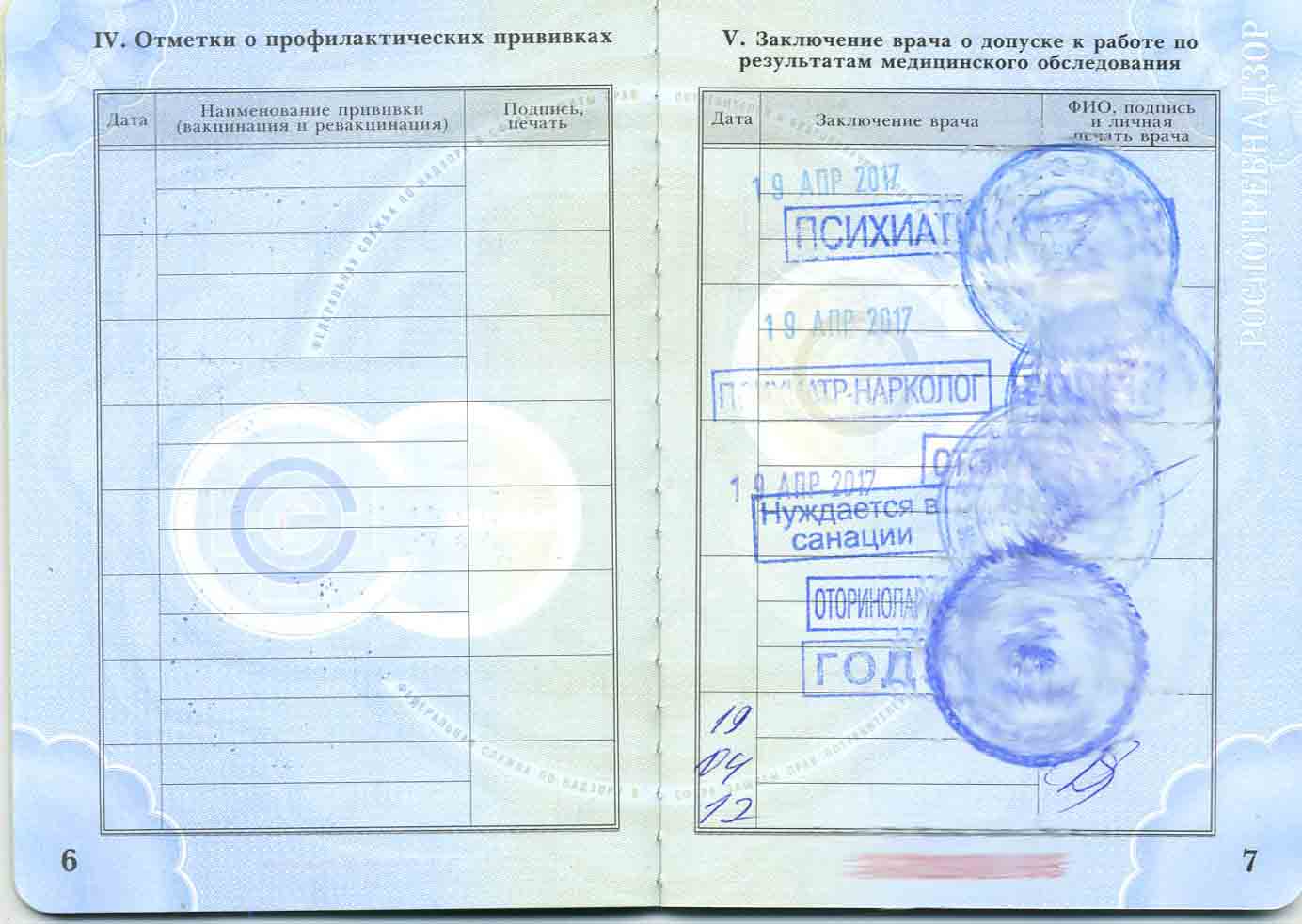 - окончание срока действия медкнижки;